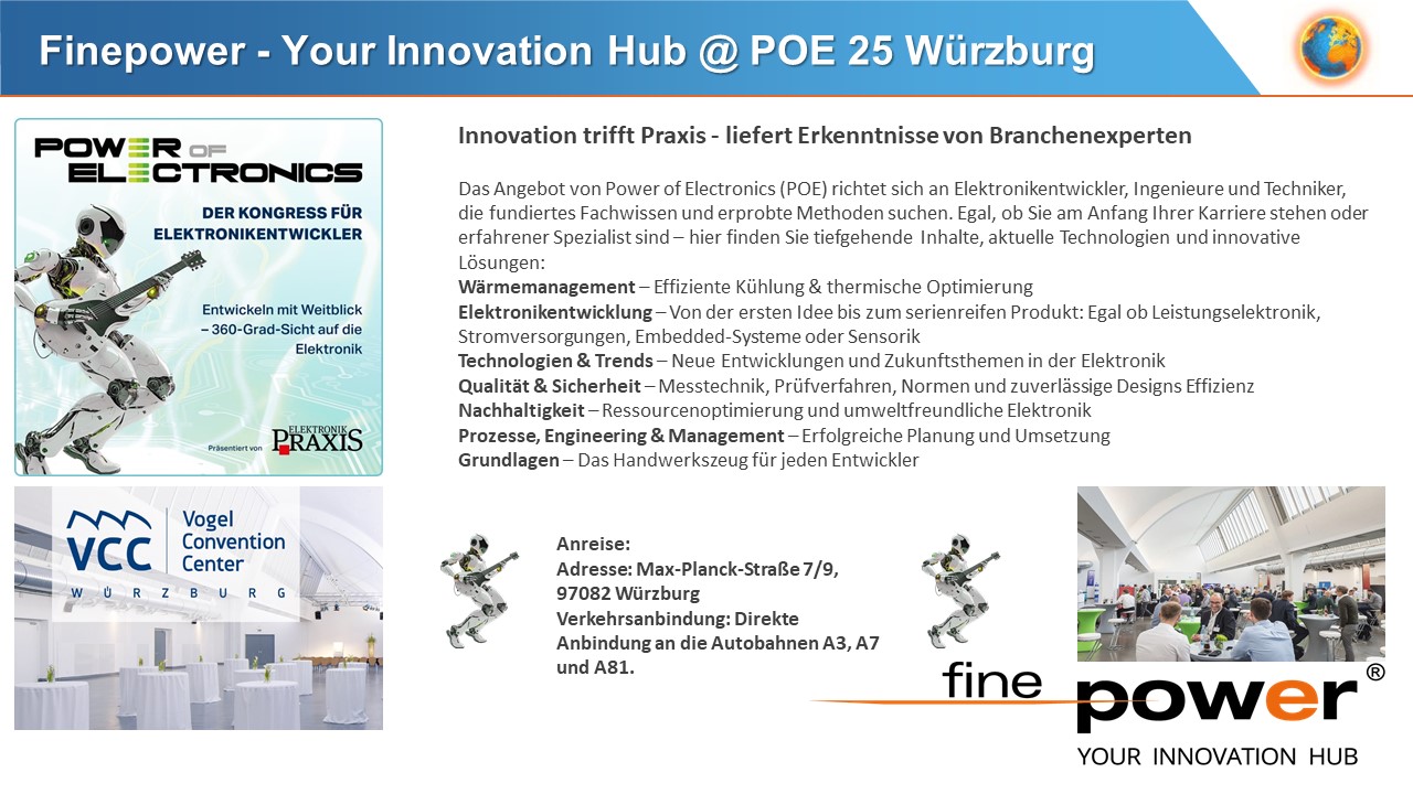 Die Finepower GmbH wurde von seinen Gesellschaftern mit dem Bestreben gegründet, umfangreiches Markt- und Technologiewissen der Leistungselektronik zu bündeln. Ihre Kunden können so die besten Produkte mit der bestmöglichen Unterstützung für zukünftige Projekte erwerben. Da die Leistungselektronik fundamental für die weitere Weiterentwicklung unserer Gesellschaft verantwortlich ist, ist es unsere Vision mit unseren Vertriebspartnern zu einer saubereren und intelligenteren Welt beizutragen.